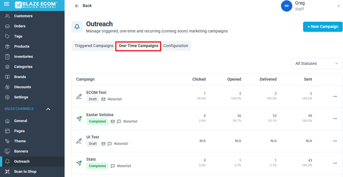If you have any more questions about Outreach Campaigns reach out to ECOM Support at Ecomsupport@blaze.me