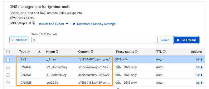 Once the records have been entered to the domain settings, please confirm with ECOM Support to have the custom domain verified for the Email Campaign sending.