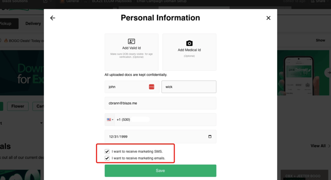- Customer must have Marketing Emails enabled to receive marketing campaign emails. They can select this during sign up or edit it later by going into their Account settings.