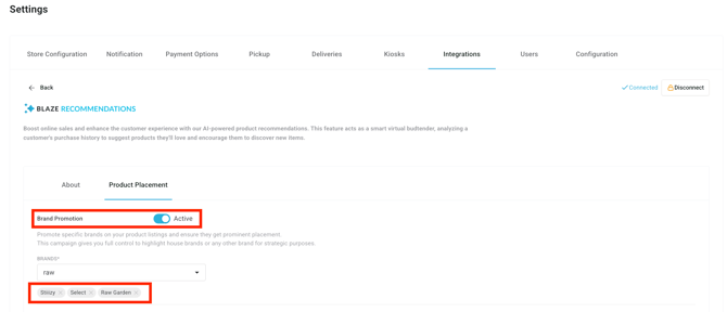 2. In the configuration step above, we selected - Stiiizy, Select, and Raw Garden brands to be promoted.