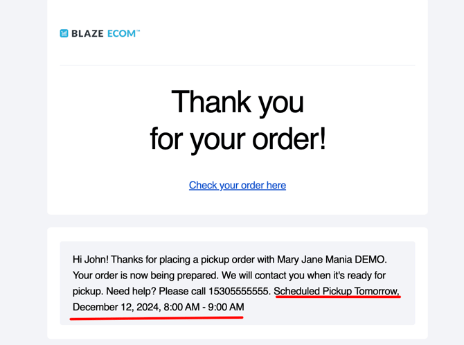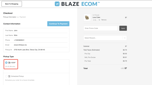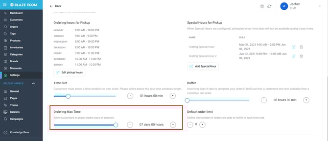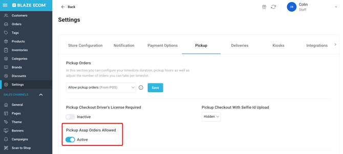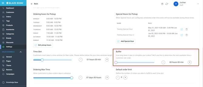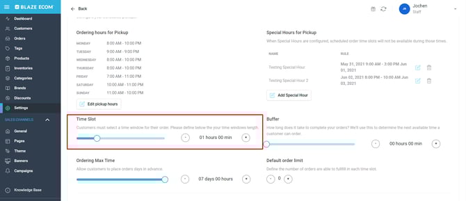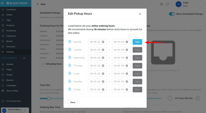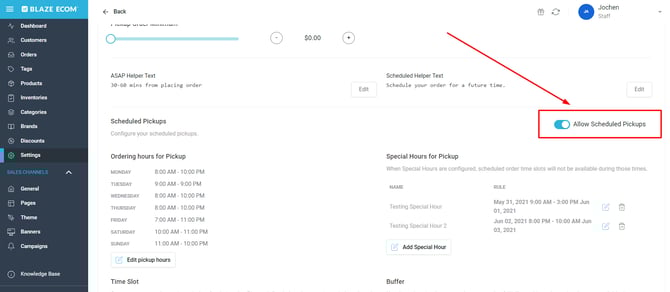 BLAZE ECOM | Scheduled Pickup Order Settings