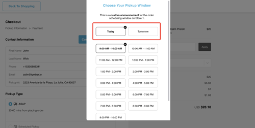 - Time Slot allows you to adjust the time slot length within the pickup hours. Customers will be required to select a specific time slot for their scheduled pickup.