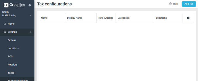 1. Go to settings > Tax Configuration in your Greenline dashboard.