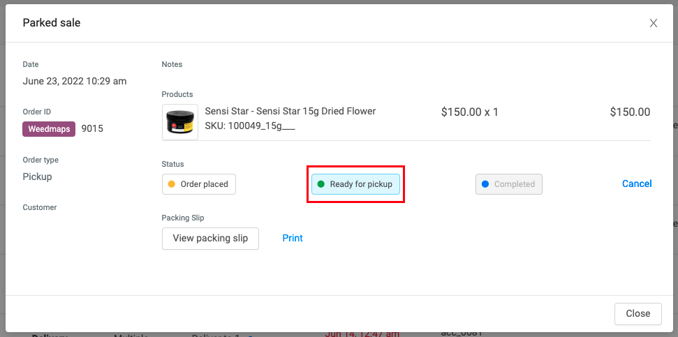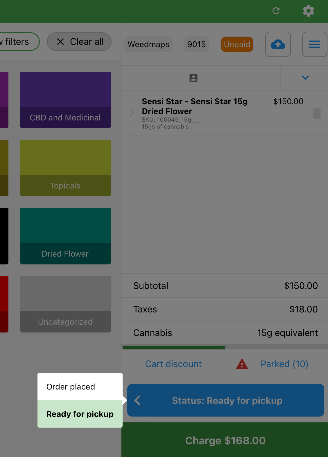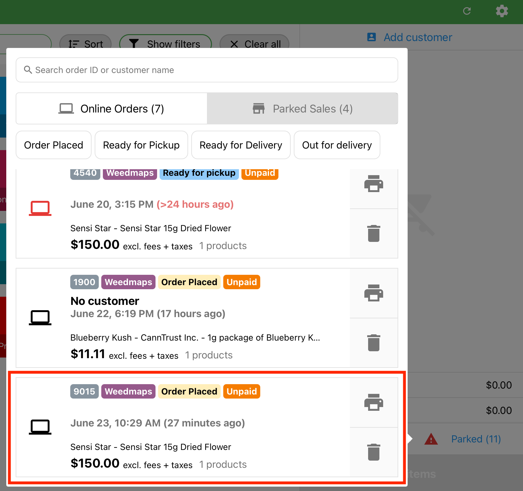 When a new order is populated through Weedmaps, you will be notified through an audio and visual notification on the POS.