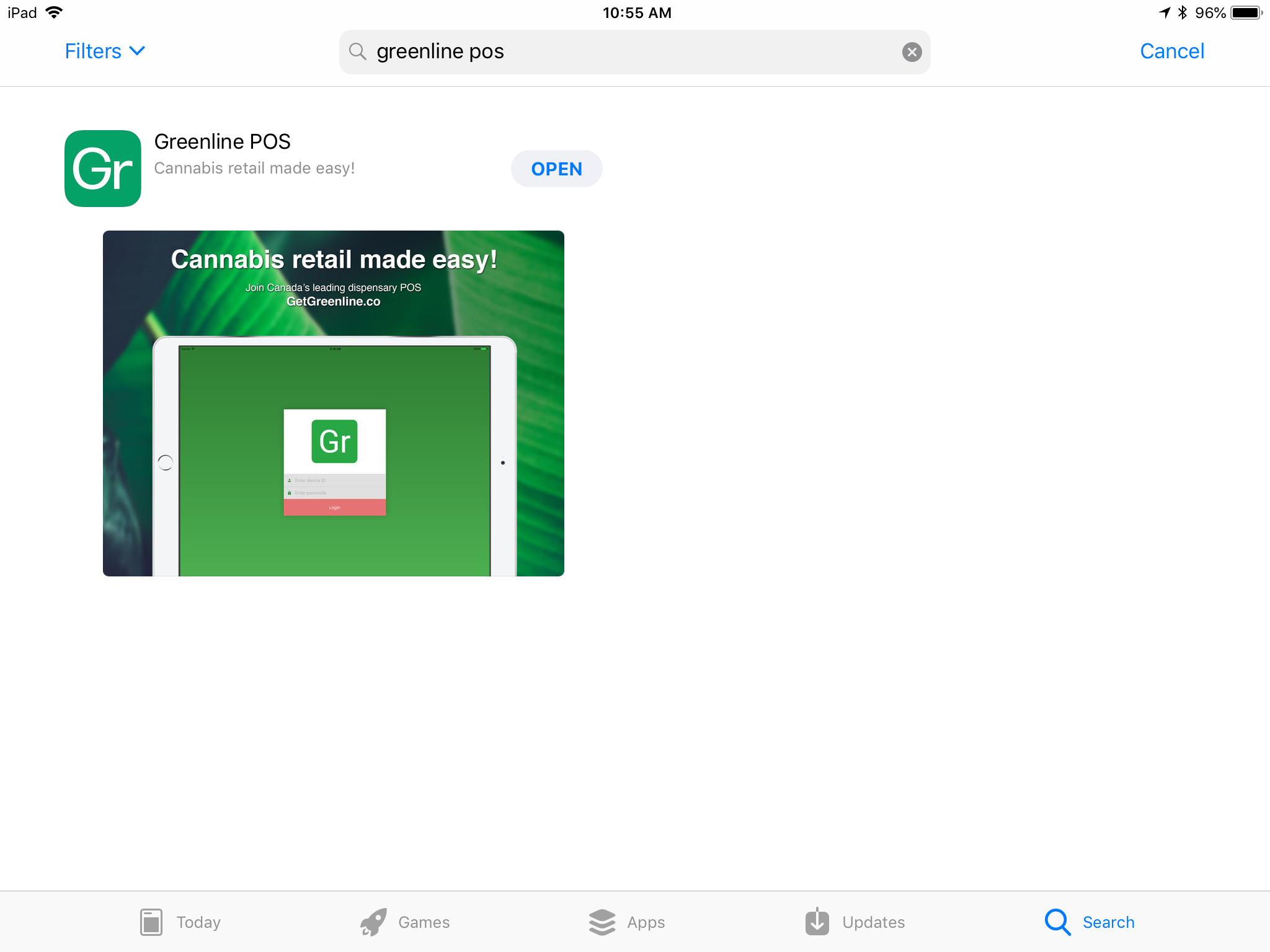 If you don't see Greenline POS, please check that your Apple ID is set to the country of Canada. This can be checked by going to your "Settings" app > "iTunes & App Store" > tap your Apple ID > "View Apple ID", then selecting your country.