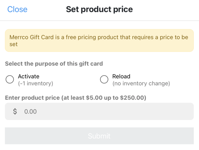 Once you've added inventory to your Merrco gift card product, you're ready to sell them on your POS!