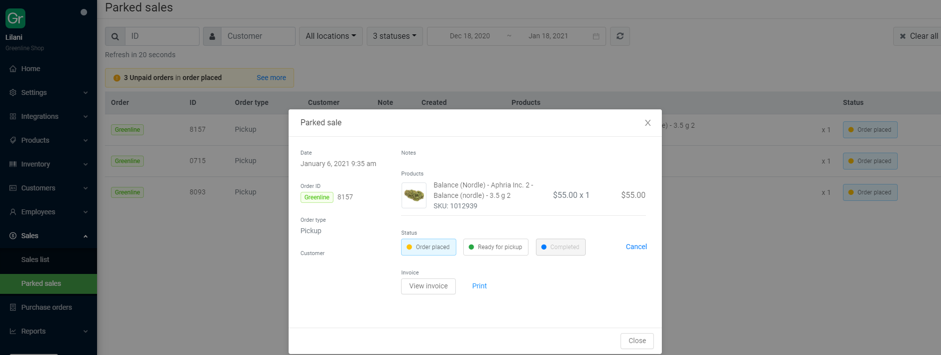 If your store accepts online orders or works with an integration partner such as Buddi, you will be able to see this information and any received payment. When you check the “Ready for pickup” box, Buddi, for example, will send an SMS text message to the customer letting them know that their order is ready for pick up.