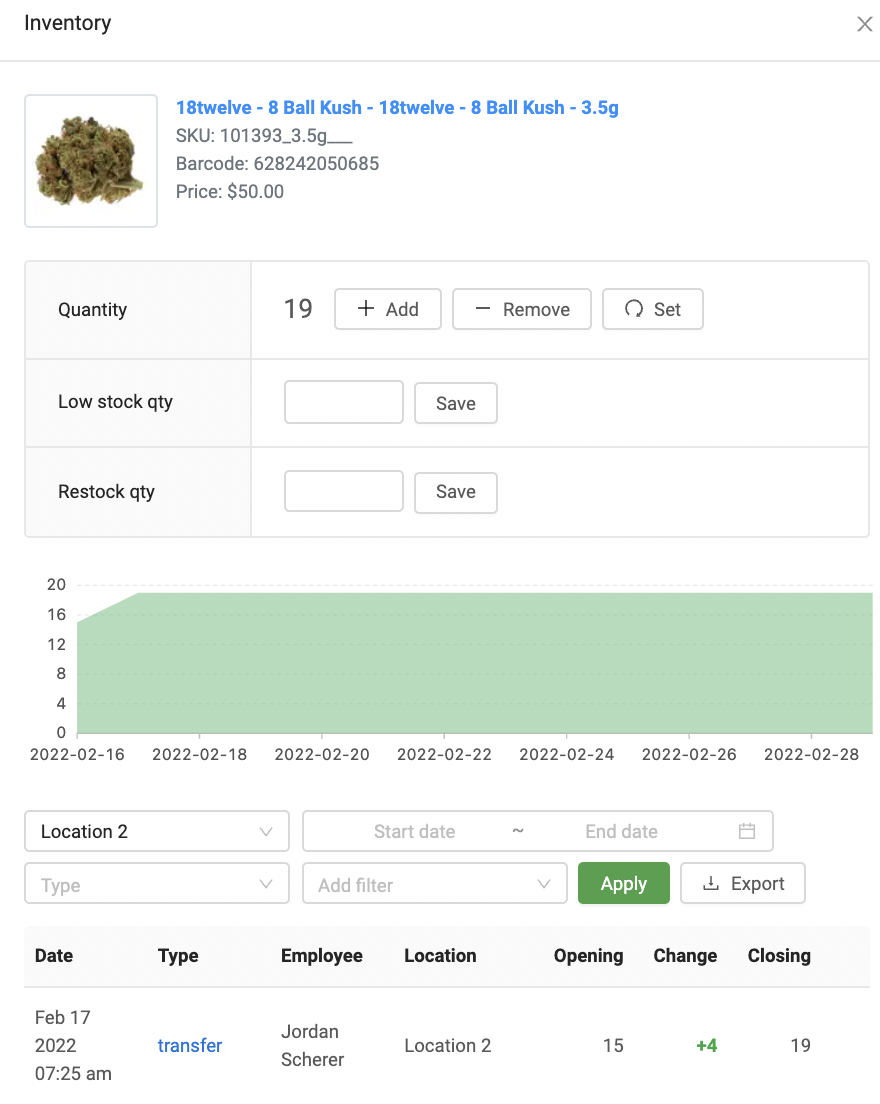 If you leave a note explaining the inventory changes, you will be able to see the inventory log reflected below capturing the change. When you hover over the little circle, the entered note will appear.