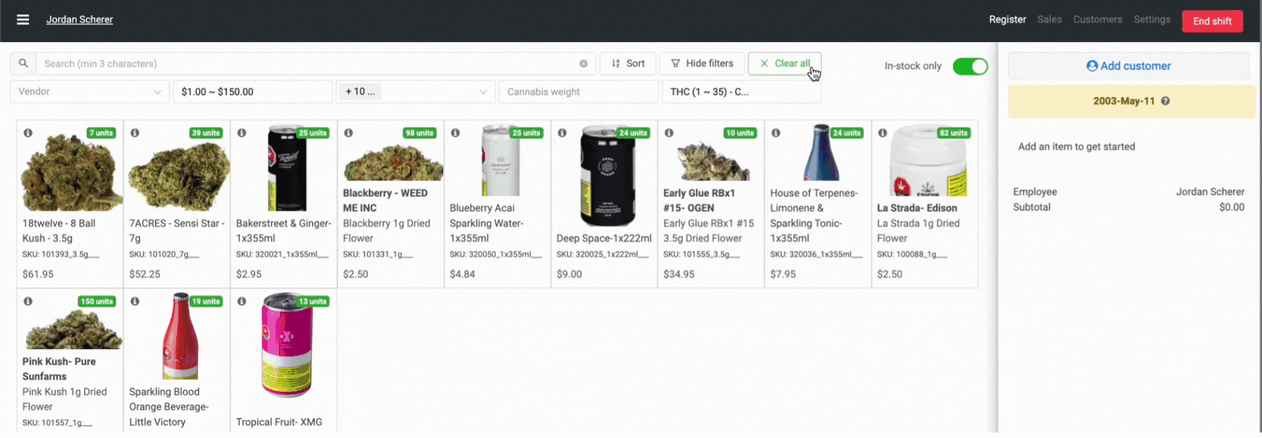 Every cannabis consumer that enters your store is looking for a unique product to suit their needs. BLAZE's Searchability function will help you get granular with your search results to get the right product in your customer's hands, every time. By using and combining search, sorting, and filtering you can narrow down your product list to find the perfect product that meets your customers exact requirements.