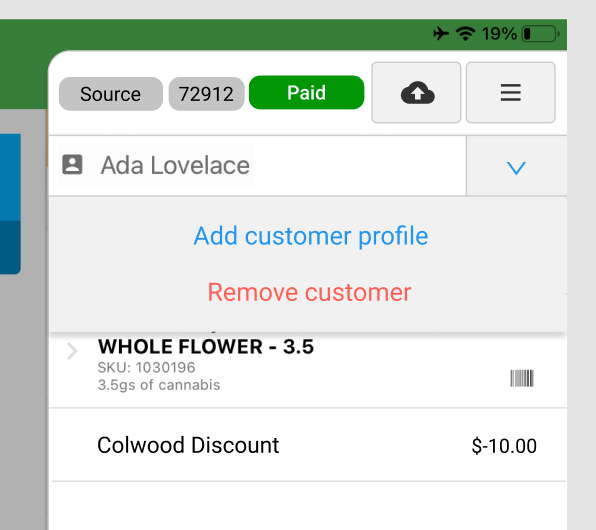 Click the arrow to the right of the name to either add or remove a customer profile.