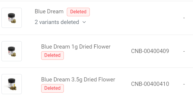 Deleting variant products
