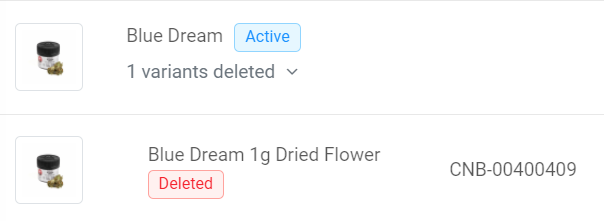 *Please note: If you delete all variants within a parent product, the parent product folder will remain active.